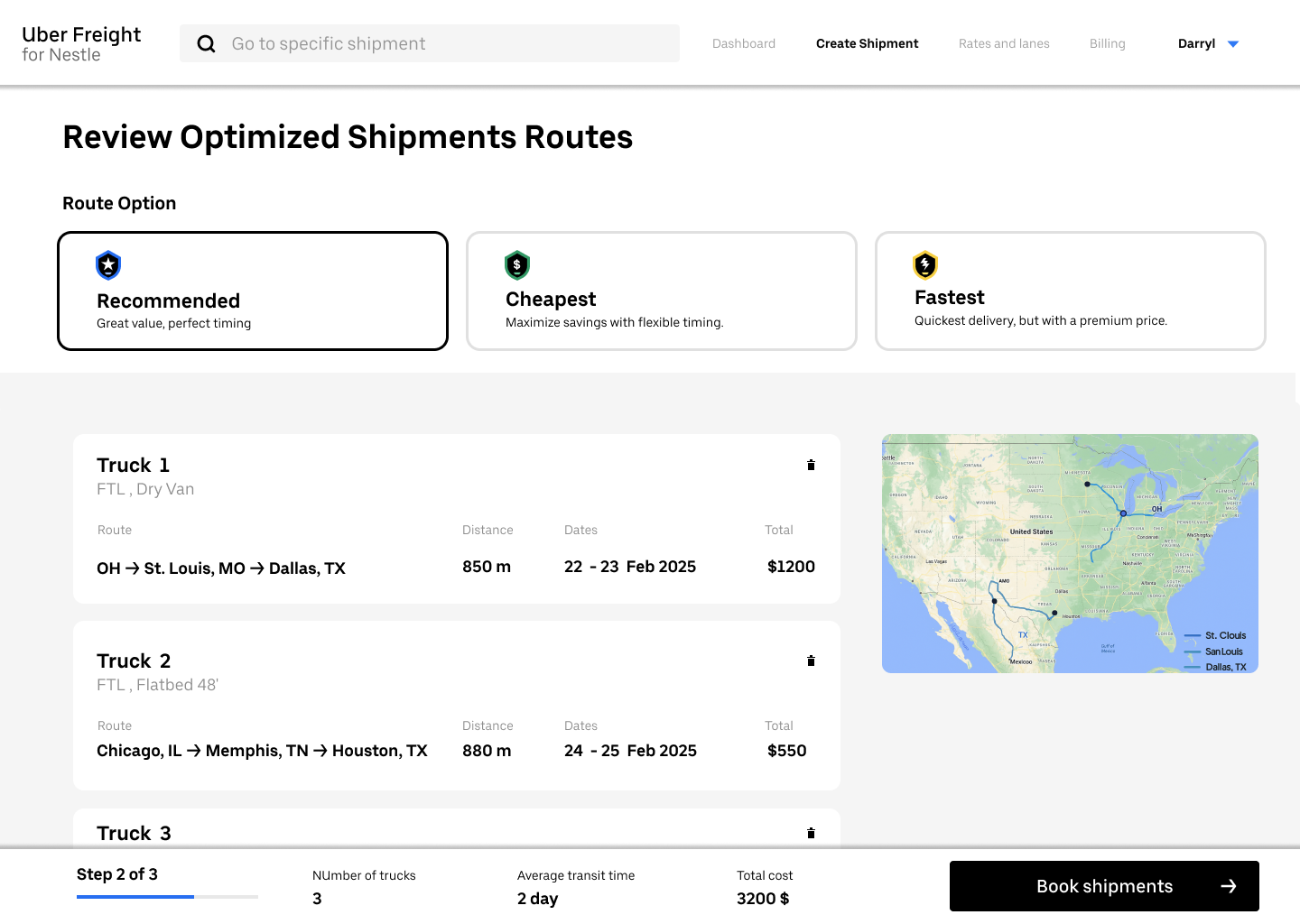 We enhanced routing efficiency by introducing multi-drop delivery — bundling multiple shipments from the same shipper into a single route to maximize truck capacity and reduce inefficiencies for both shippers and carriers.